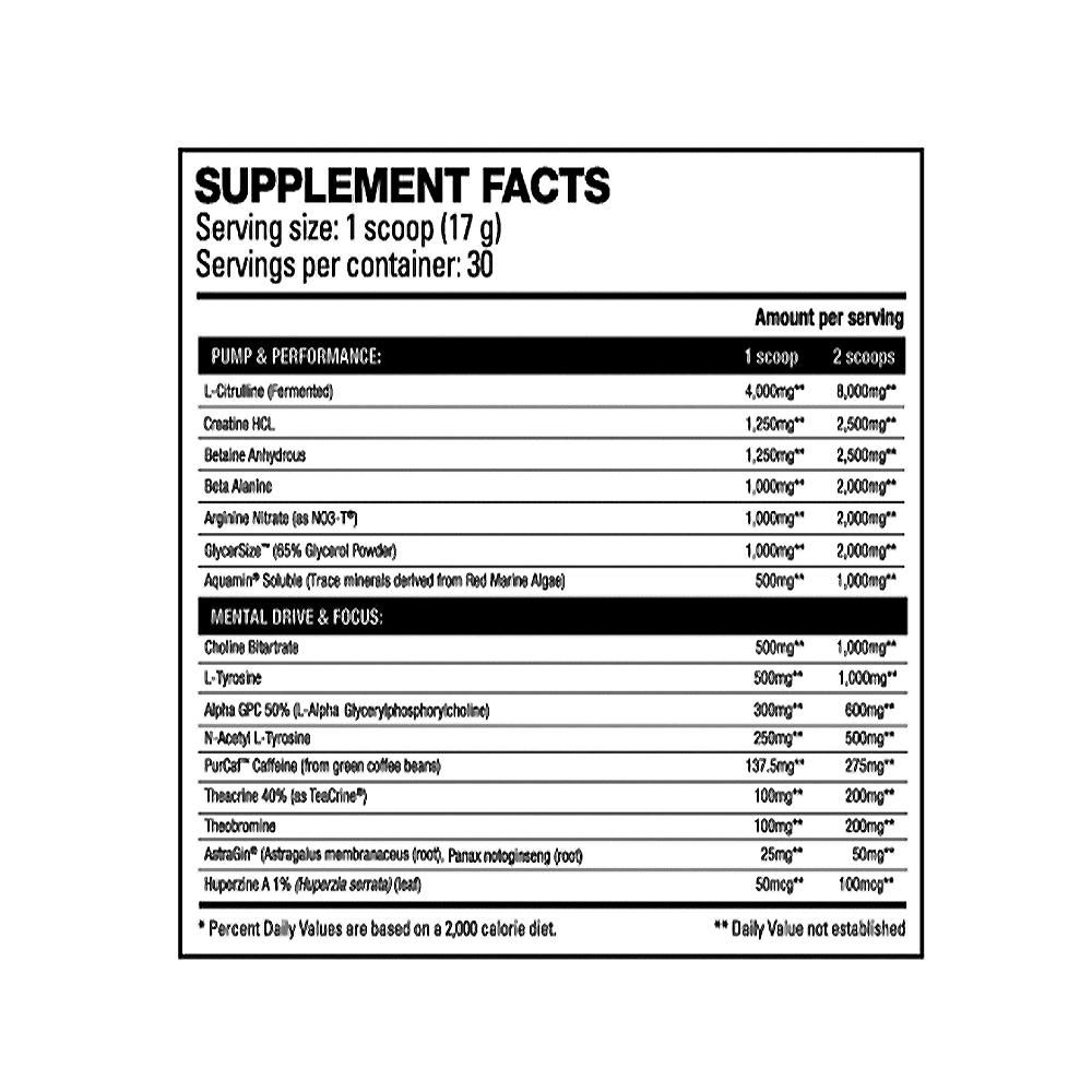 Start with ½ scoop to assess tolerance due to the high stimulant content.