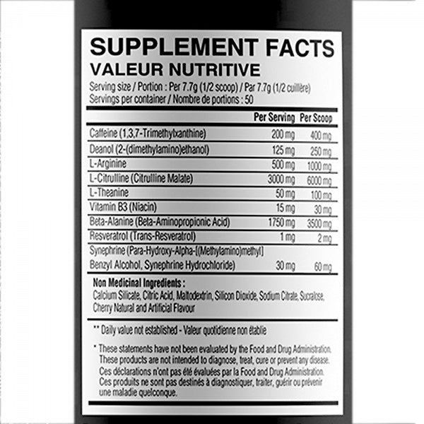Start with ½ scoop to assess tolerance due to high stimulant content. Do not exceed 1 scoop per day.