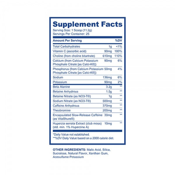 390 mg of total Caffeine (250 mg Anhydrous + 140 mg delayed release) for clean, sustained energy
